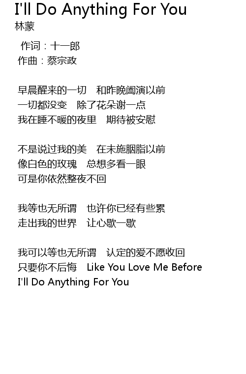 | zhǐ yào nǐ bù hòu huǐ Like You Love Me Before | |