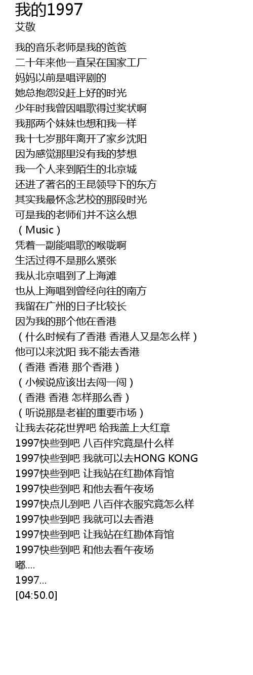 | [04:00.0] | 1997快些到吧 我就可以去香港 |