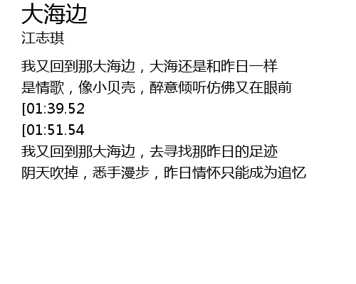 | [00:13.07] | 我又回到那大海边,大海还是和昨日一样 |