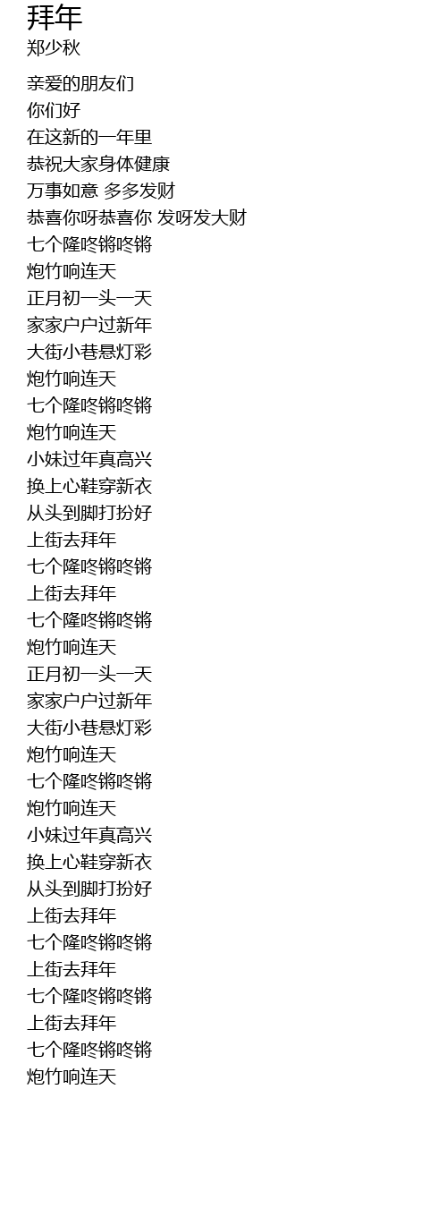 | [01:15.61] | 上街去拜年 |