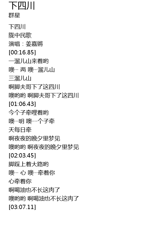 | [00:53.18] | 噢哟哟 啊脚夫哥下了这四川 |