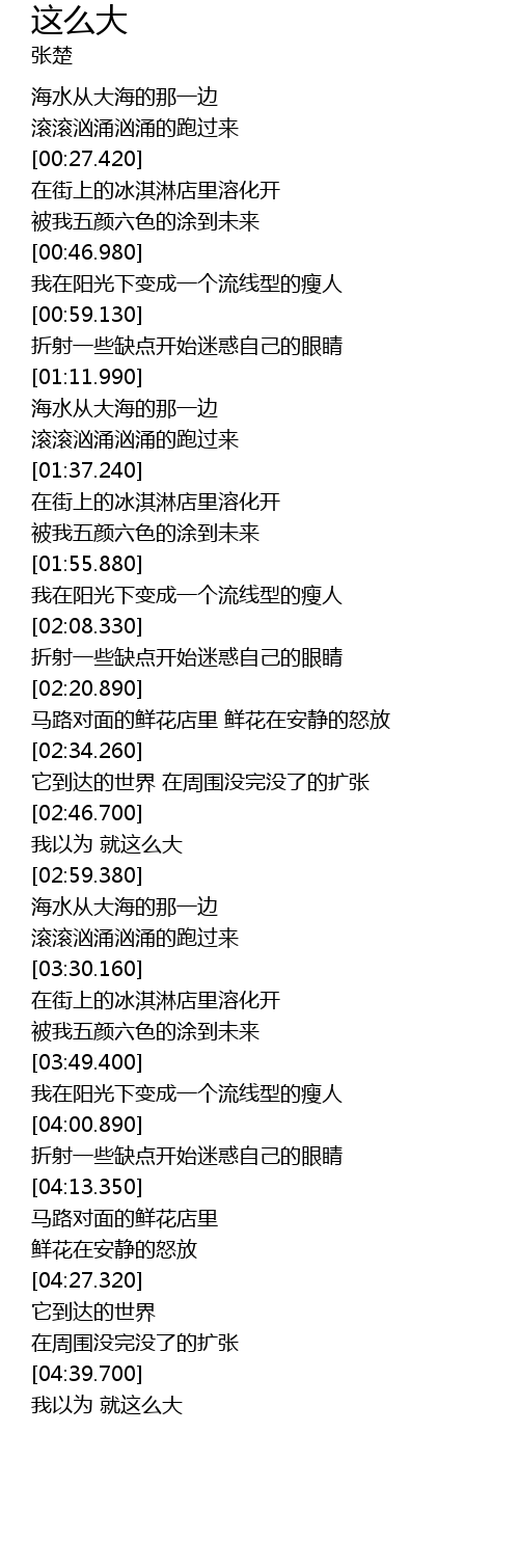 | [02:50.910] | wǒ yǐ wéi jiù zhè me dà |