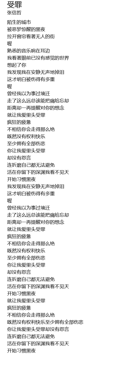 | [04:27.42] | 你让我爱里头受罪却没有怨言 |