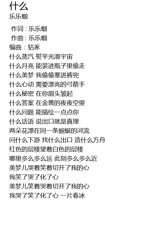 | [00:00.000] | 作词 : 乐乐蝈 |