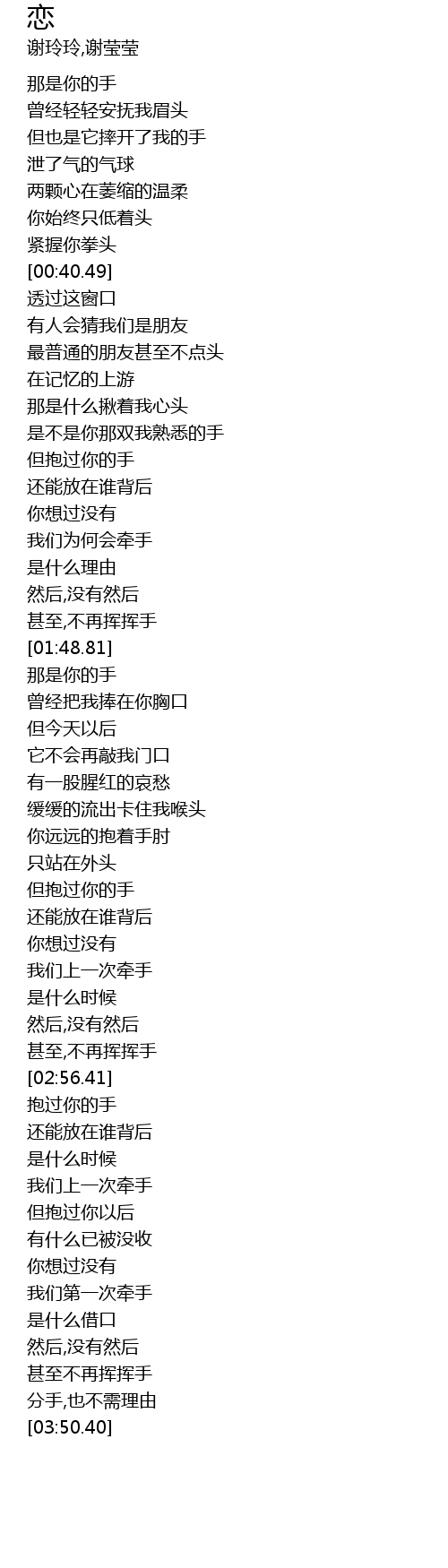 | [02:40.55] | 我们上一次牵手 |