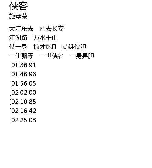 | [01:23.03] | 一生飘零 一世侠名 一身是胆 |