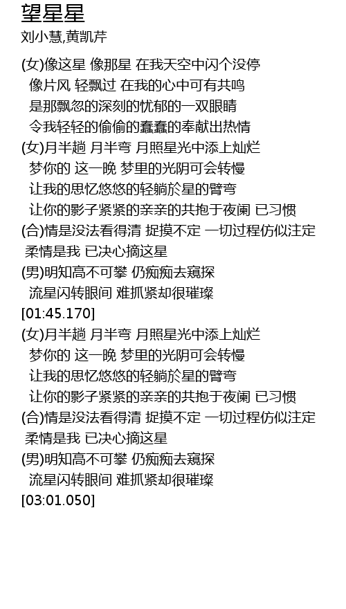 | [00:11.710] | (女)像这星 像那星 在我天空中闪个没停 |