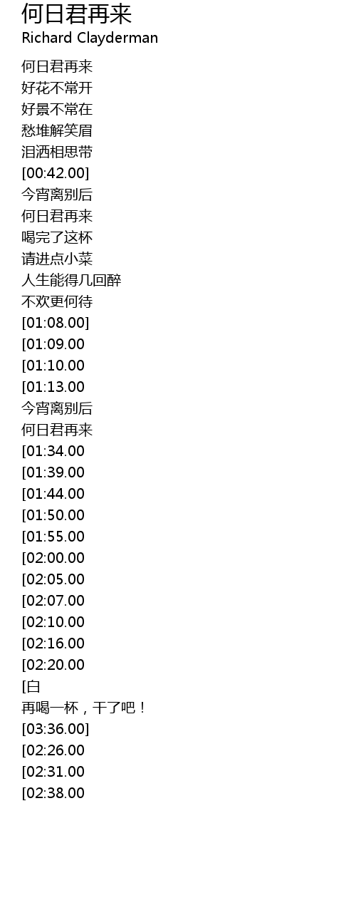 | [03:12.00][02:00.00] | hé rì jūn zài lái |