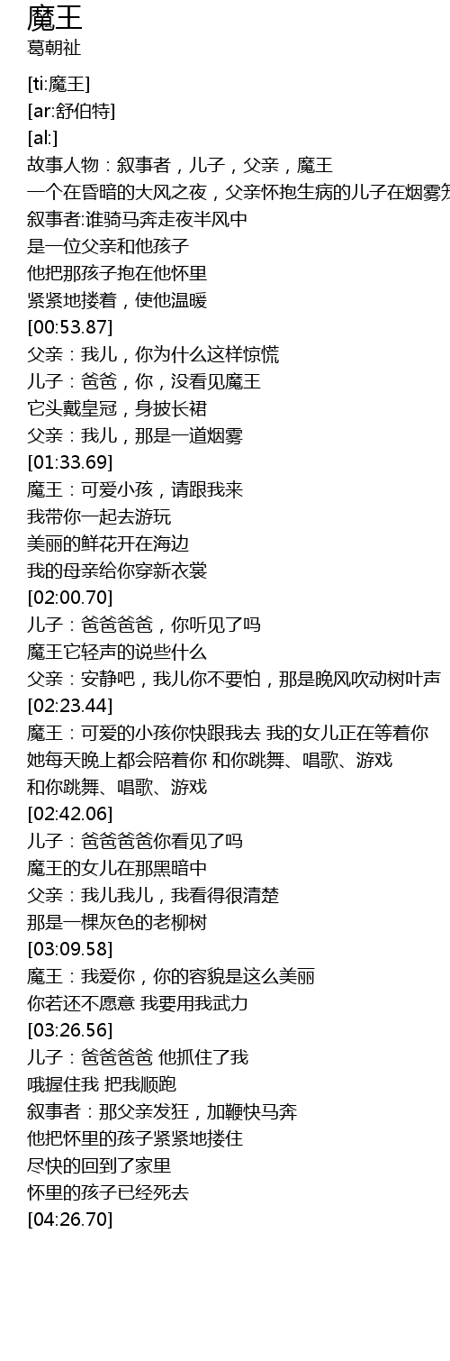 | [00:08.79] | 故事人物:叙事者,儿子,父亲,魔王 |