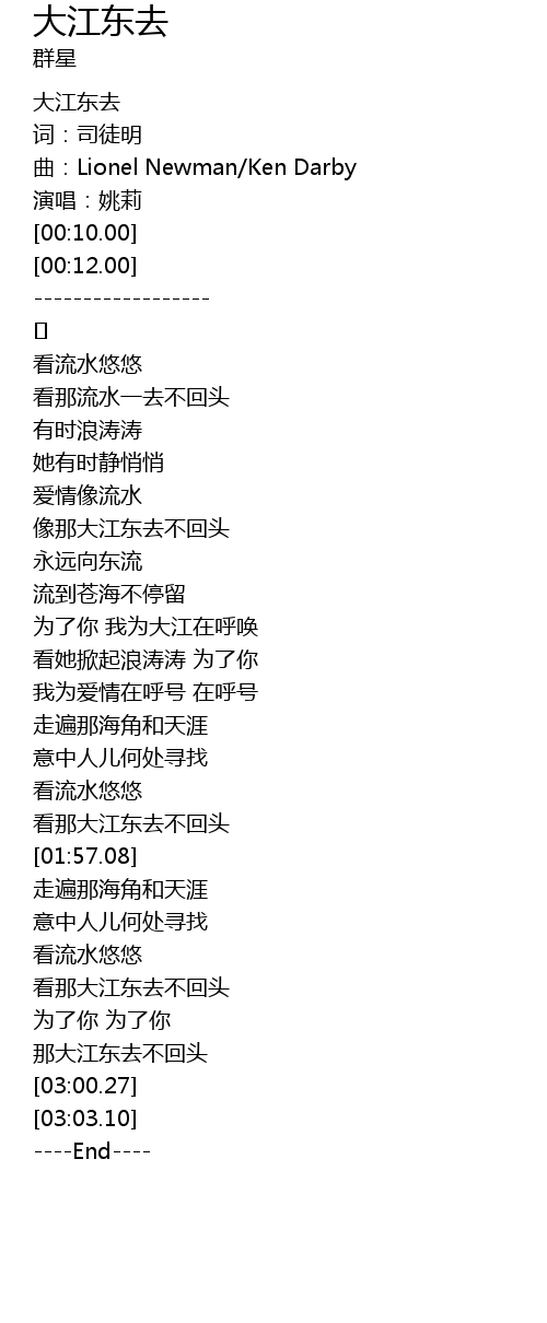 | [00:50.95] | xiàng nà dà jiāng dōng qù bù huí tóu |