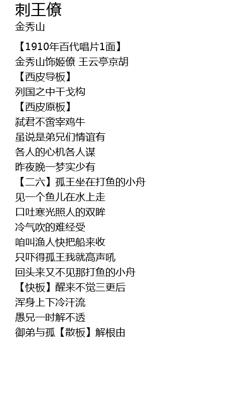 | [00:06] | 金秀山饰姬僚 王云亭京胡 |
