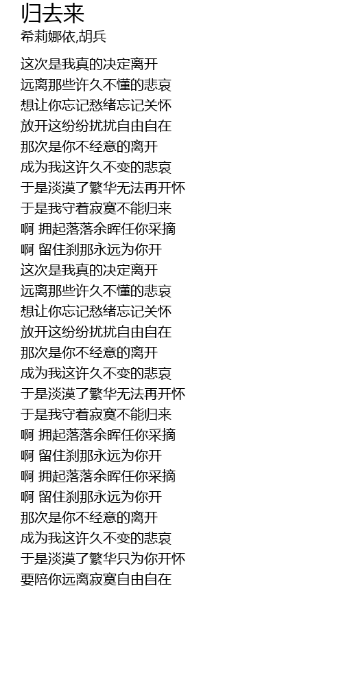 | [00:24.948] | 放开这纷纷扰扰自由自在 |