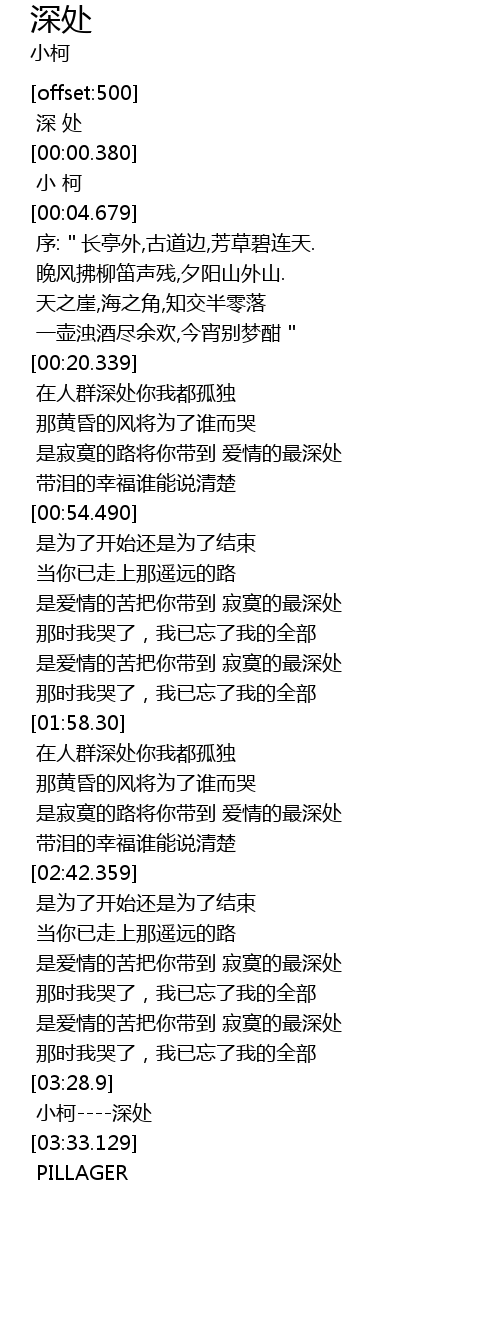 | [03:31.789] | 小柯----深处 |