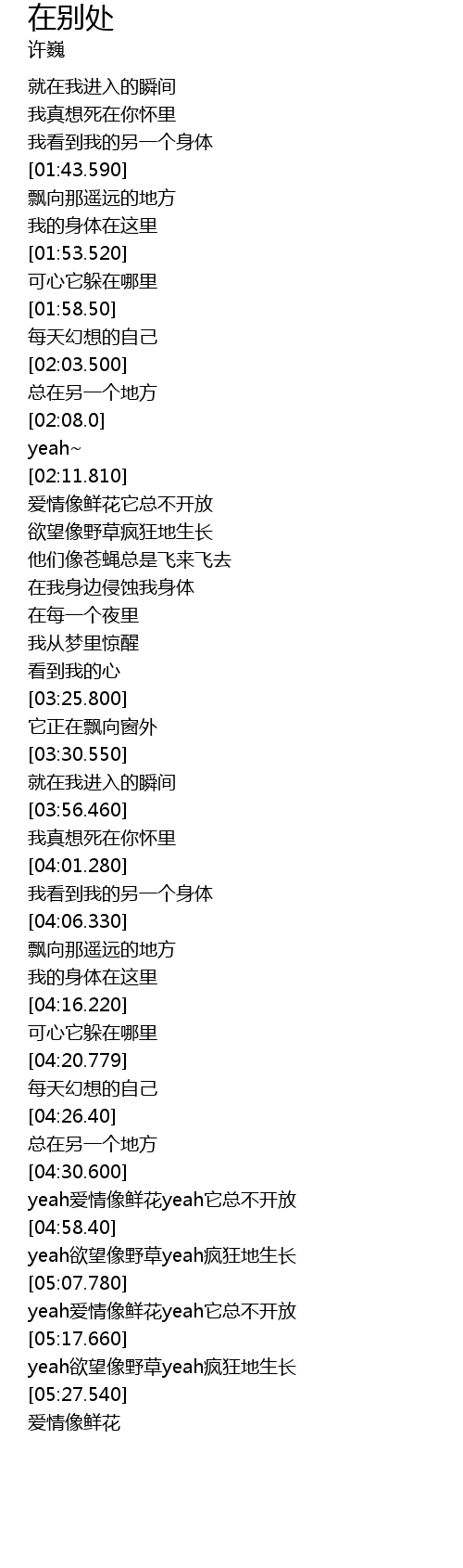 | [02:04.200] | zǒng zài lìng yí gè dì fāng |