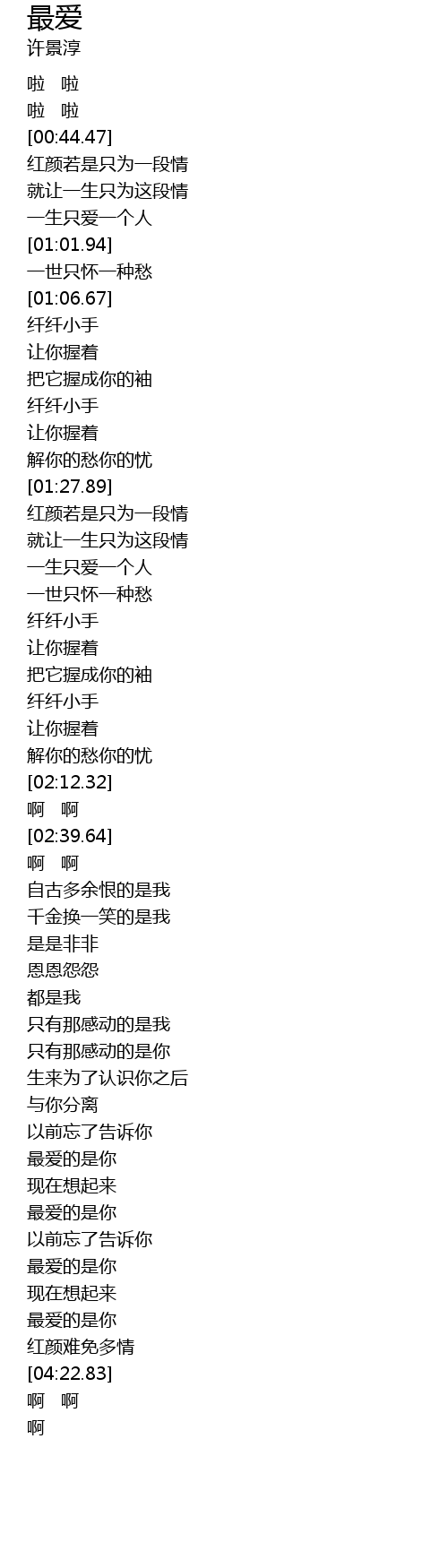 | [00:47.27] | hóng yán ruò shì zhǐ wèi yī duàn qíng |