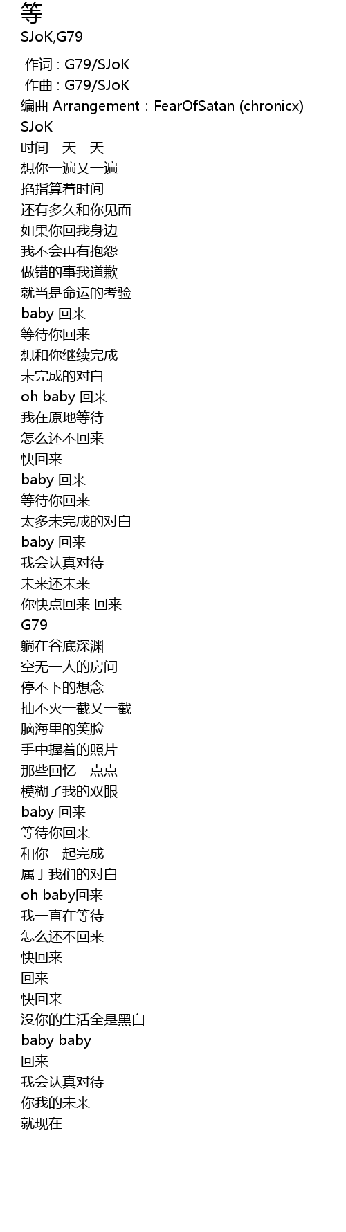 | [00:00.000] | zuò cí : G79 SJoK |