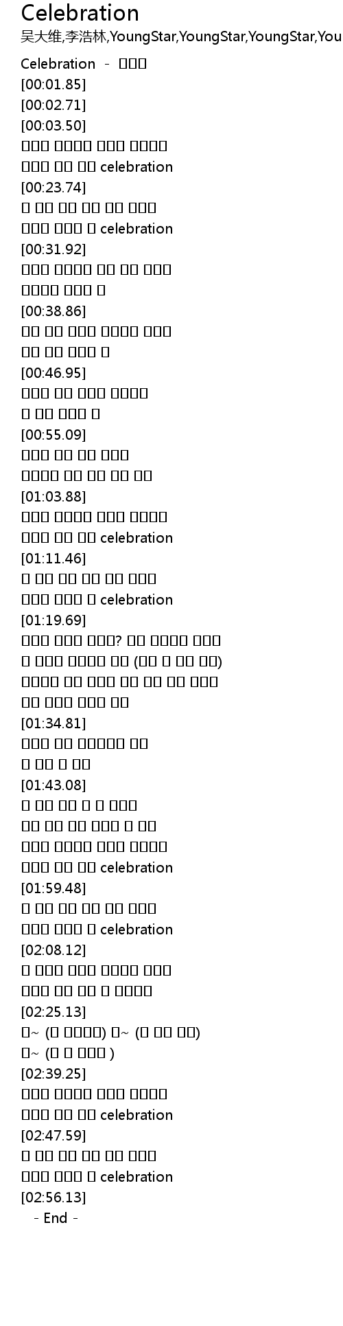 | [02:03.45] | 오늘이 마지막 날 celebration |