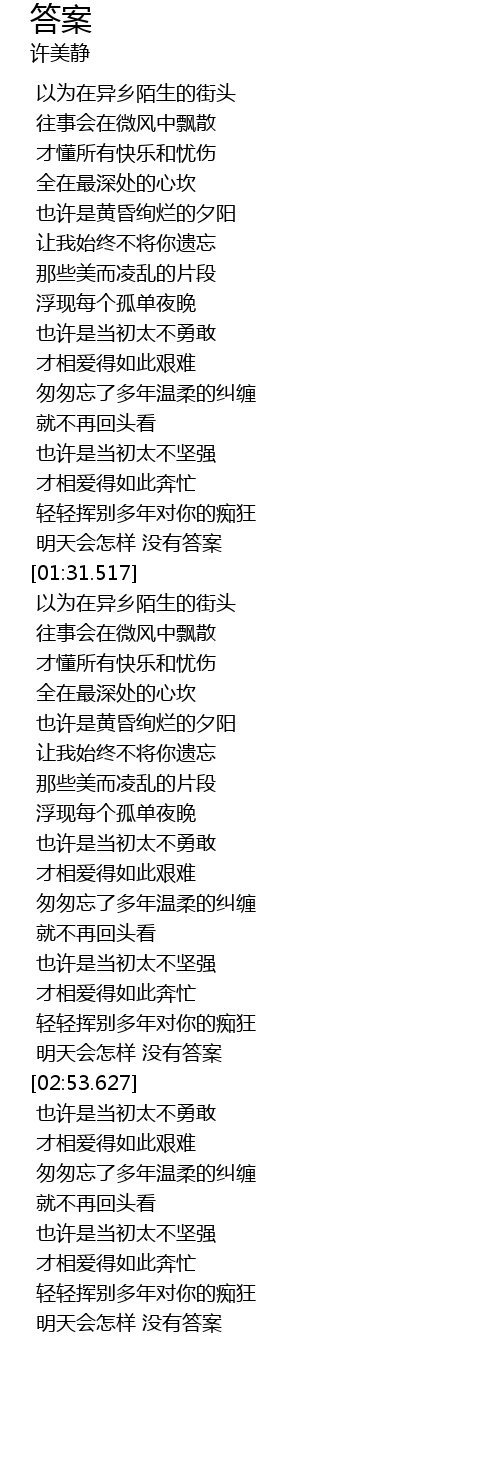 | [01:39.896] | 以为在异乡陌生的街头 |