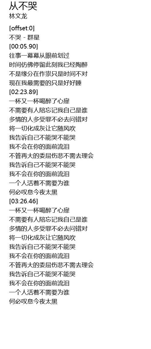 | [03:08.15] | 我告诉自己不能哭不能哭 |