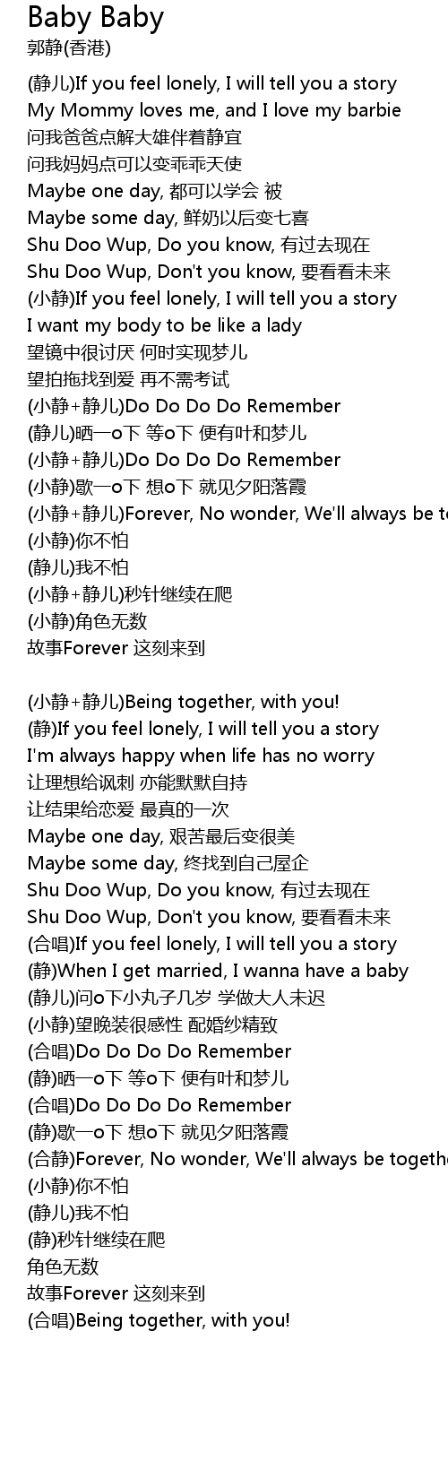 | xiǎo jìng jìng ér Forever, No wonder, We' ll always be together | |