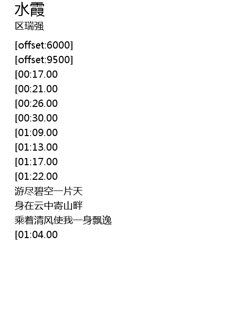 | [02:09.00][01:17.00][00:43.00] | qing wu guo yu shui dai lai yuan shan man le qu |
