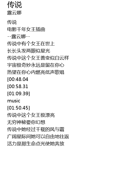 | [00:01.31] | 传说 |