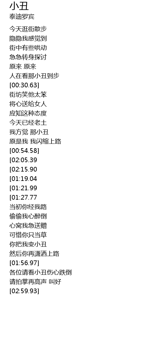 | [02:21.57][01:19.04] | 你既不爱小丑怎么昨天 |