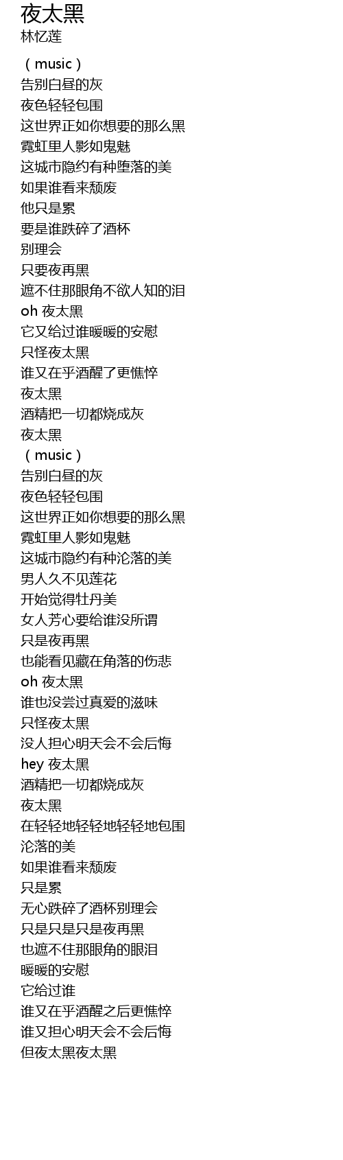 | [01:34.53] | 夜太黑 |