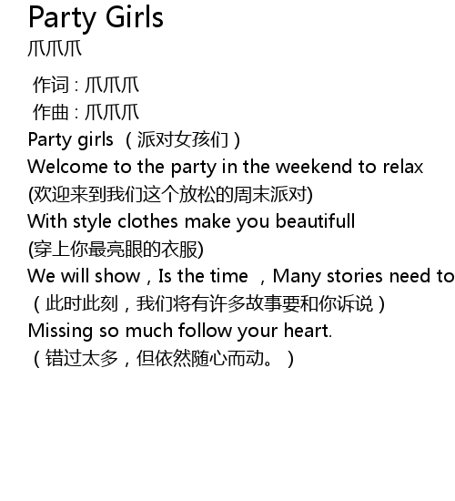 | [00:12.413] | Party girls pài duì nǚ hái men |