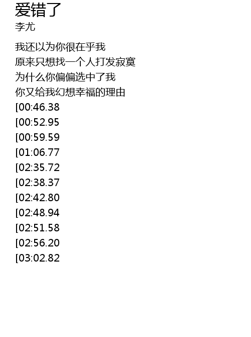 | [03:05.99][02:35.72][01:12.44] | 我们的爱错了 |