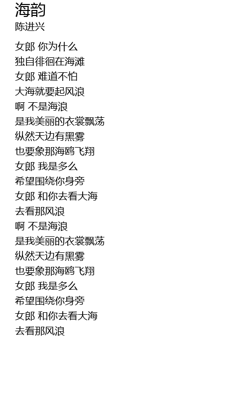 | [02:33.84] | nǚ láng hé nǐ qù kàn dà hǎi |