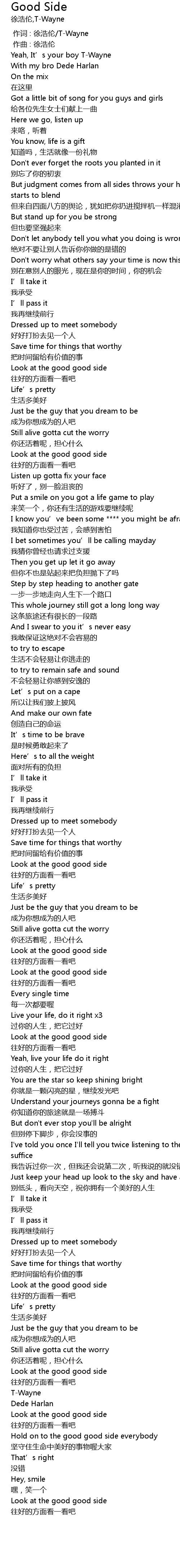 | [00:42.776] | Look at the good good side |
