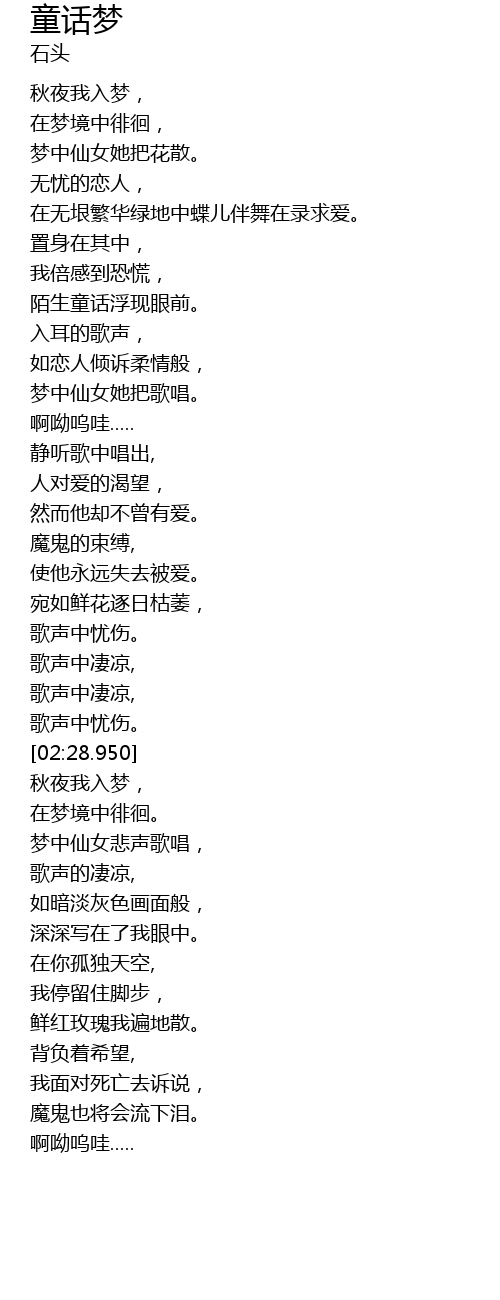 | [03:18.540] | 在梦境中徘徊。 |