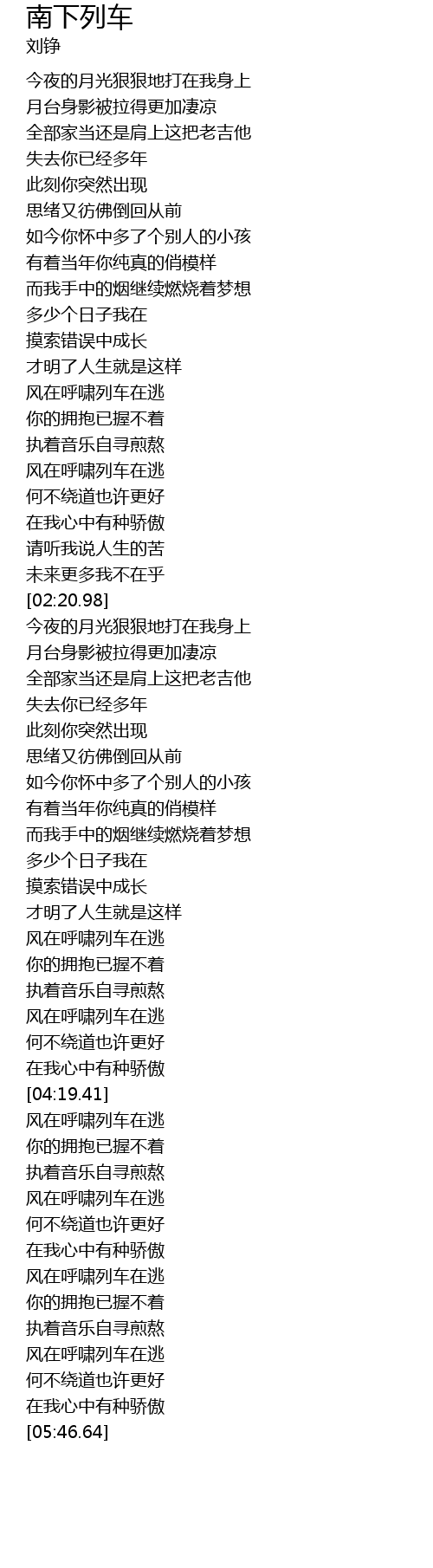 | [05:14.32] | 风在呼啸列车在逃 |