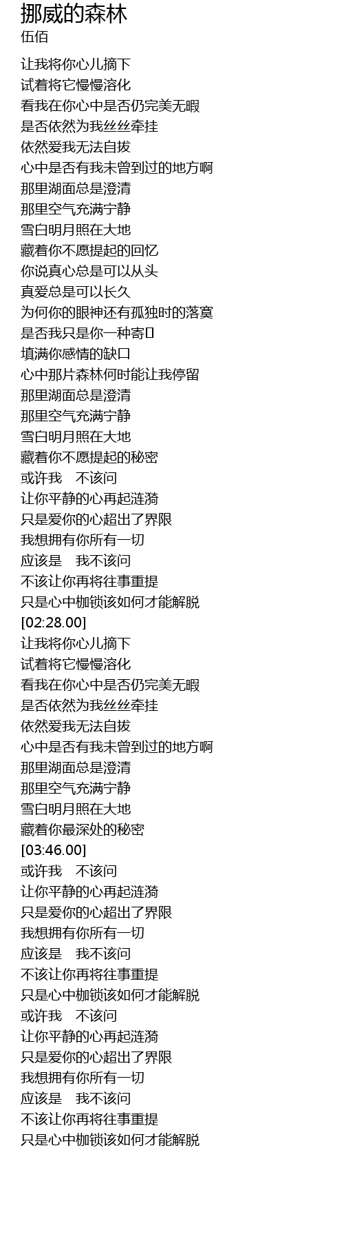 | [01:40.00] | 心中那片森林何时能让我停留 |
