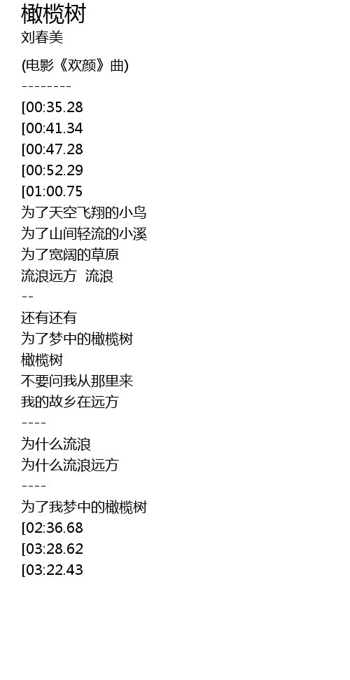 | [01:36.21] | 为了梦中的橄榄树 |