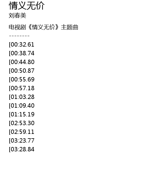 | [00:04.00] | 电视剧《情义无价》主题曲 |