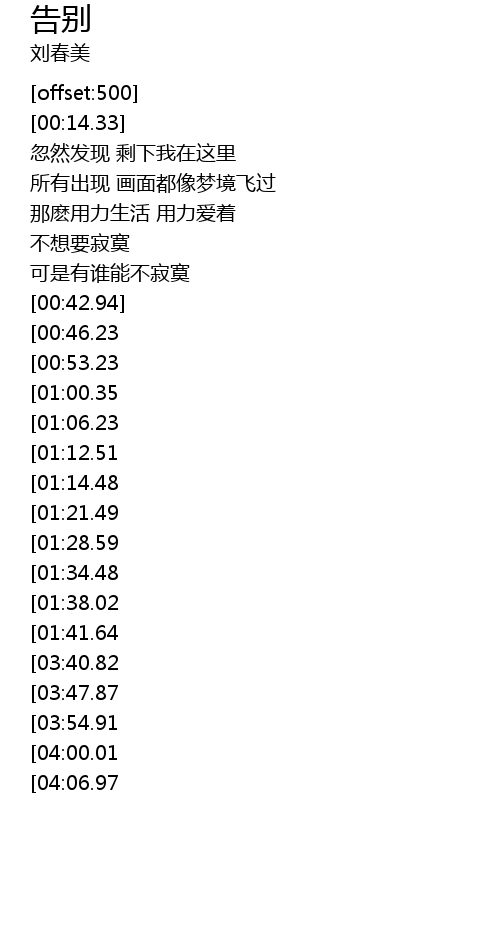 | [04:23.12][03:54.91][03:27.28] | La La La... 告别 |