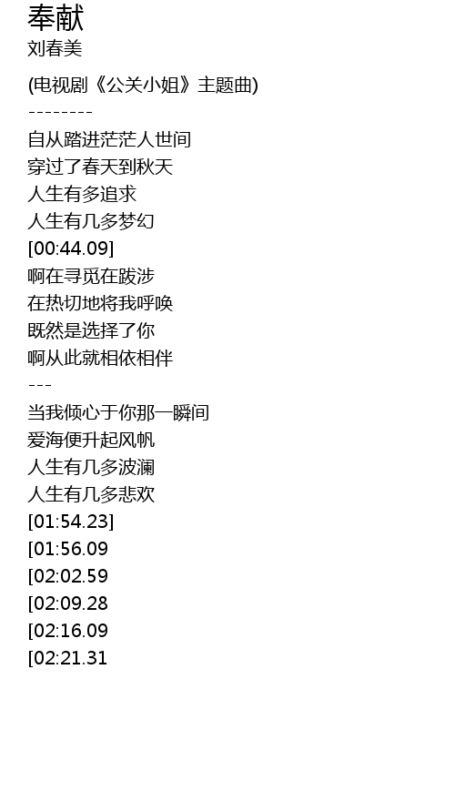 | [00:04.00] | (电视剧《公关小姐》主题曲) |