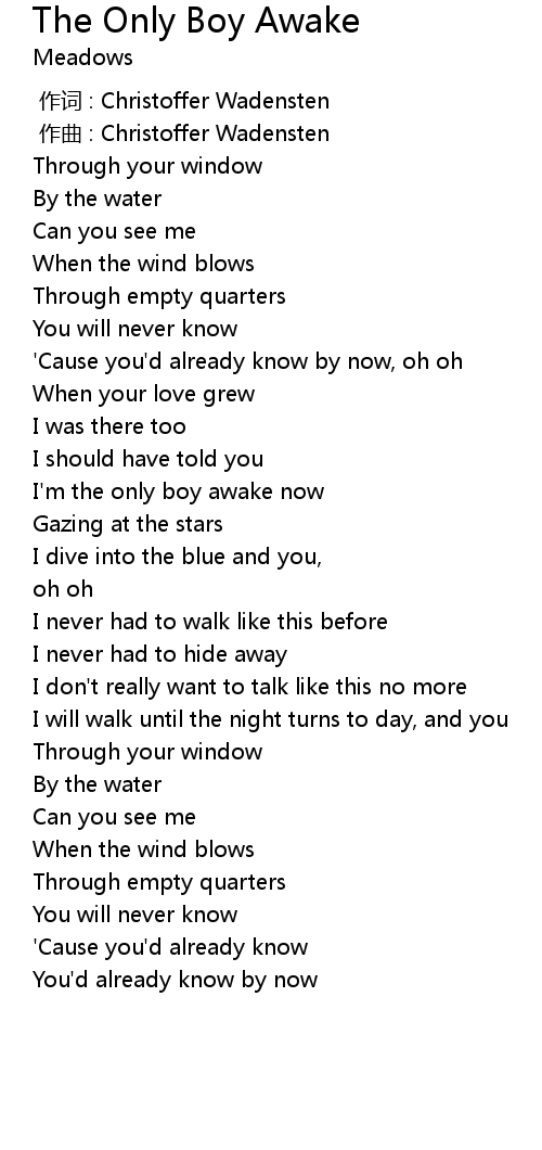 | [00:56.37] | I' m the only boy awake now |