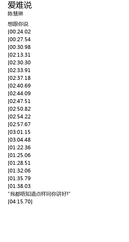 | [02:27.04][02:13.31][00:34.51] | xiǎng gēn nǐ shuō |