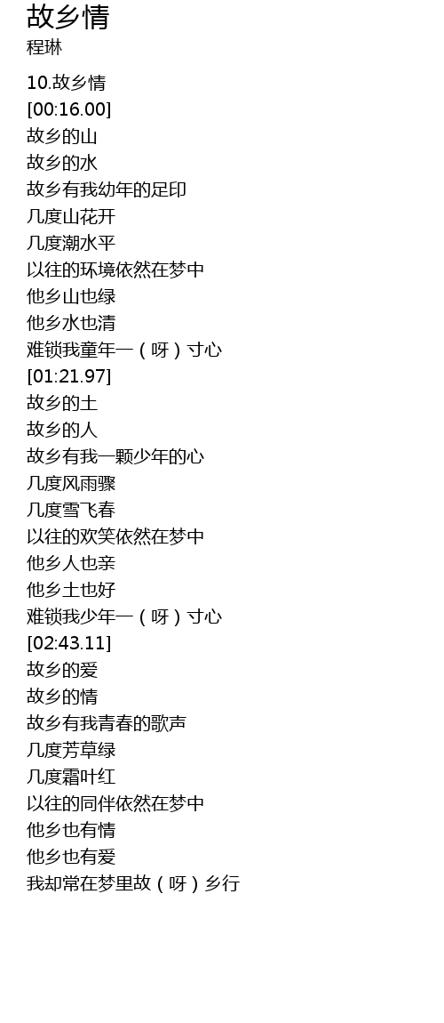 | [00:00.02] | 10.故乡情 |