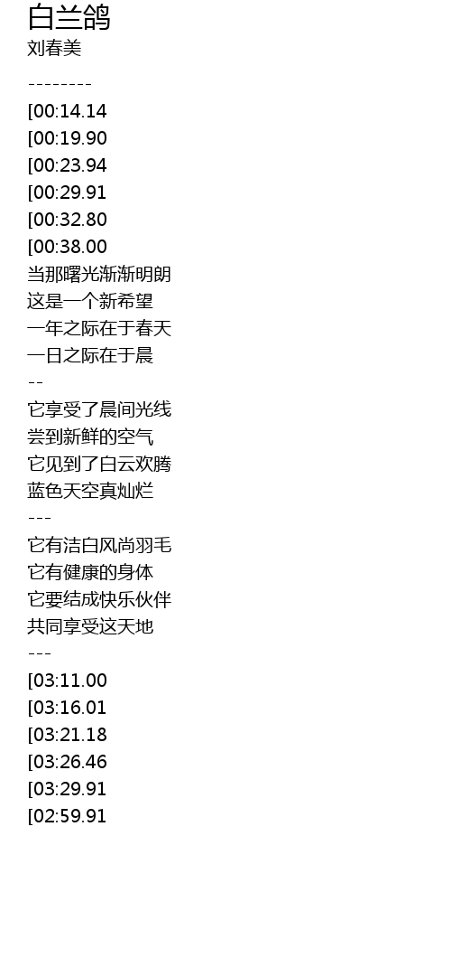 | [03:42.94][03:21.18][02:41.32] | 哦 它是一只白兰鸽 |