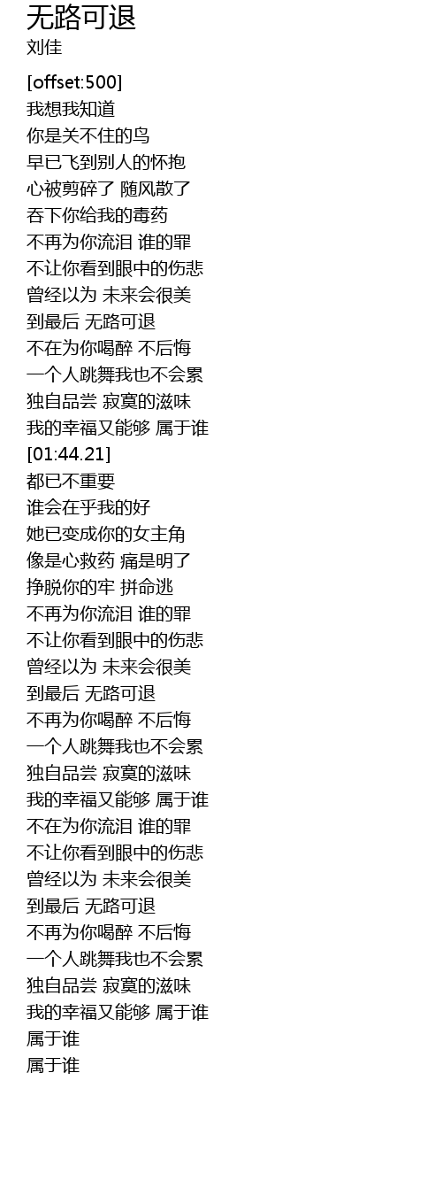 | [03:02.31] | dào zuì hòu wú lù kě tuì |