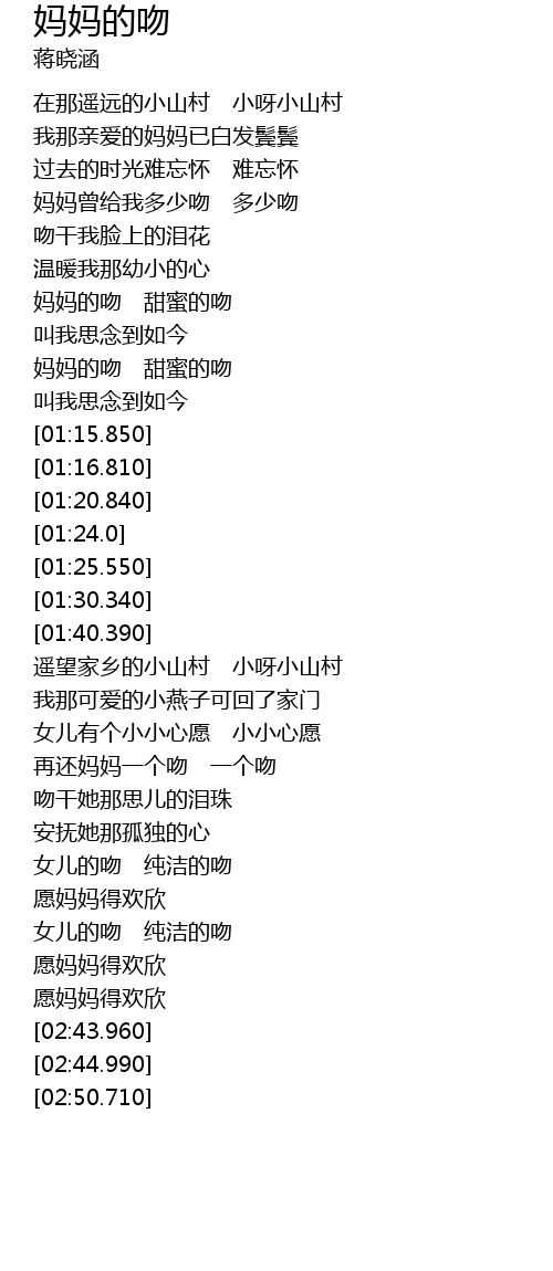 | [01:02.540] | 妈妈的吻 甜蜜的吻 |
