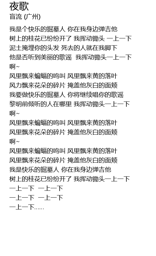 | [01:47.490] | 我要做快乐的掘墓人 你将继续唱你的歌谣 |