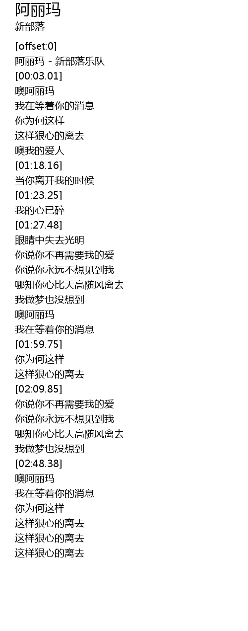| [00:00.16] | 阿丽玛 - 新部落乐队 |