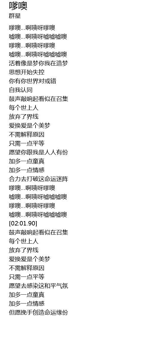 | [01:57.17] | 嘘噢…啊咦呀嘘嘘嘘噢 |
