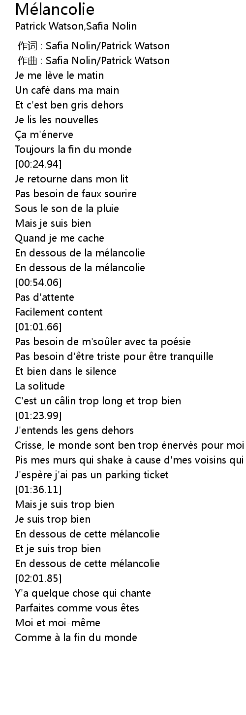 | [00:41.41] | En dessous de la mélancolie |