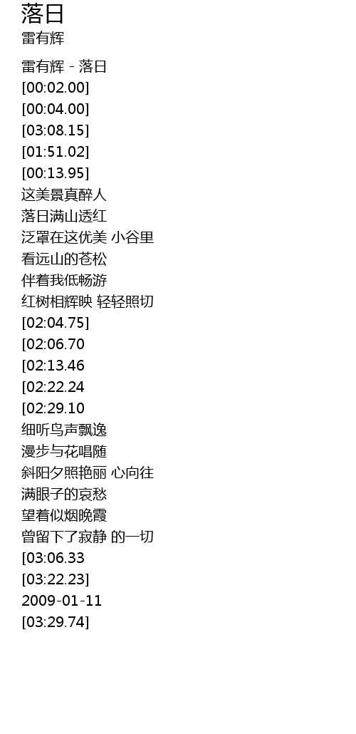 | [00:00.00] | 雷有辉 - 落日 |